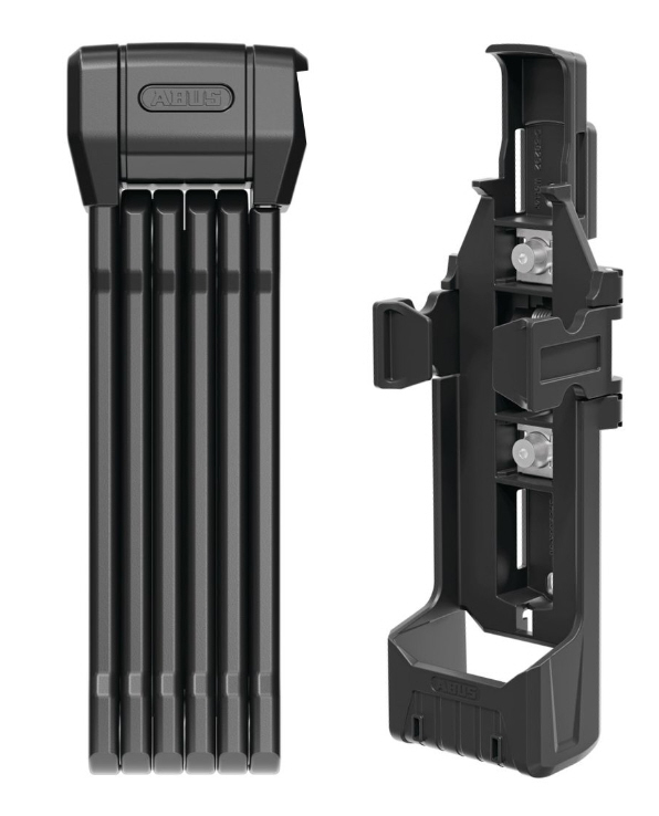 Cet antivol pliable est particulièrement flexible grâce à son corps de serrure rotatif. Tu peux ainsi tourner l'ouverture pour la tige de fermeture là où tu en as besoin. Pour le transport, tu plies l'antivol comme un mètre pliant en une taille compacte. Ensuite, tu la ranges dans le support de cadenas fourni, qui peut être facilement monté sur le cadre du vélo. Dans le support, tu trouveras aussi un compartiment pratique pour la clé.