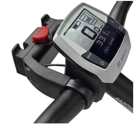 Cette version de l'adaptateur peut être montée en plus d'un écran de vélo électrique. Le pont de montage extra large entoure l'écran, de sorte qu'il n'est pas nécessaire de le monter à nouveau. L'adaptateur est 22 mm plus long à l'avant que la version standard.