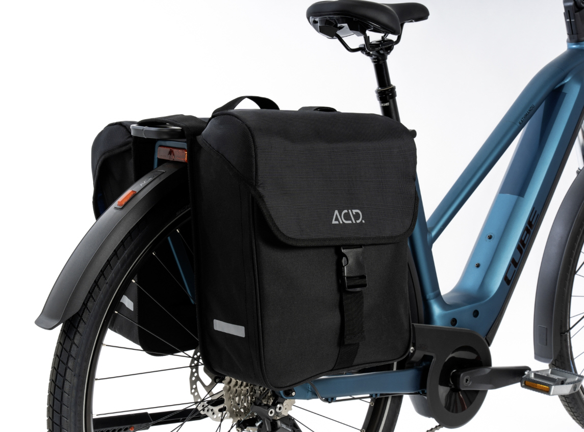 L'Acid CMPT 15 Double est un sac de rangement double stable pour le porte-bagages. Il convainc par sa finition robuste, sa fixation facile et ses éléments réfléchissants pour une meilleure visibilité. Idéal pour les trajets quotidiens, les courses ou les petites randonnées.