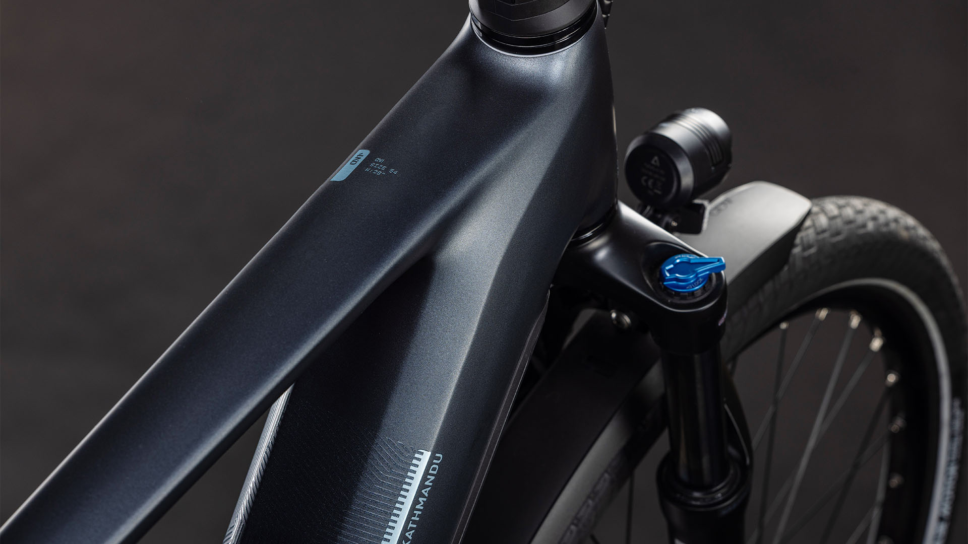 Le cadre du Cube Kathmandu Hybrid peut paraître peu spectaculaire au premier abord, mais en y regardant de plus près, on découvre son élégance et sa classe, ainsi que les nombreuses innovations et les détails intelligents. Le moteur CX de Bosch, avec sa batterie PowerTube de 800 Wh, est esthétiquement et proprement intégré dans le design, n'est qu'un des points forts. Un autre est notre Efficient Comfort Geometry qui fonctionne harmonieusement avec la fourche suspendue de 100 mm, ce qui optimise le contrôle, surtout dans des conditions difficiles. De plus, la pose interne des câbles souligne le look épuré du châssis. Et quoi d'autre ? Un UDH polyvalent, presque indestructible, pour une disponibilité facile des pièces de rechange, un garde-chaîne intégré et notre porte-bagages intégré IC 3.0, stable, robuste et très esthétique, qui peut accueillir tout ce qui doit être emporté à l'aventure.