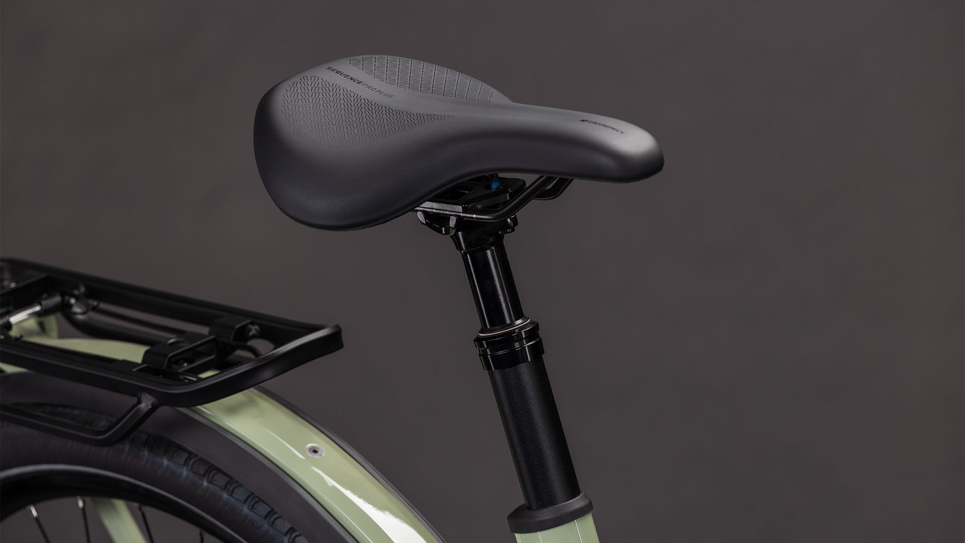 Le cadre bas du Cube Kathmandu Hybrid porte bien son nom, car il est très facile de monter et de descendre et l'aventure peut commencer directement ! Mais il y a plus, par exemple le moteur CX de Bosch avec sa batterie PowerTube de 800 Wh, esthétiquement et proprement intégré dans le design, et notre Efficient Comfort Geometry qui fonctionne harmonieusement avec la fourche suspendue de 100 mm, ce qui optimise le contrôle, surtout dans des conditions difficiles. De plus, la pose interne des câbles souligne le look épuré du châssis. Et quoi d'autre ? Un UDH polyvalent, presque indestructible, pour une disponibilité facile des pièces de rechange, un garde-chaîne intégré et notre porte-bagages intégré IC 3.0, stable, robuste et très esthétique, qui peut accueillir tout ce qui doit être emporté lors d'un voyage d'exploration.