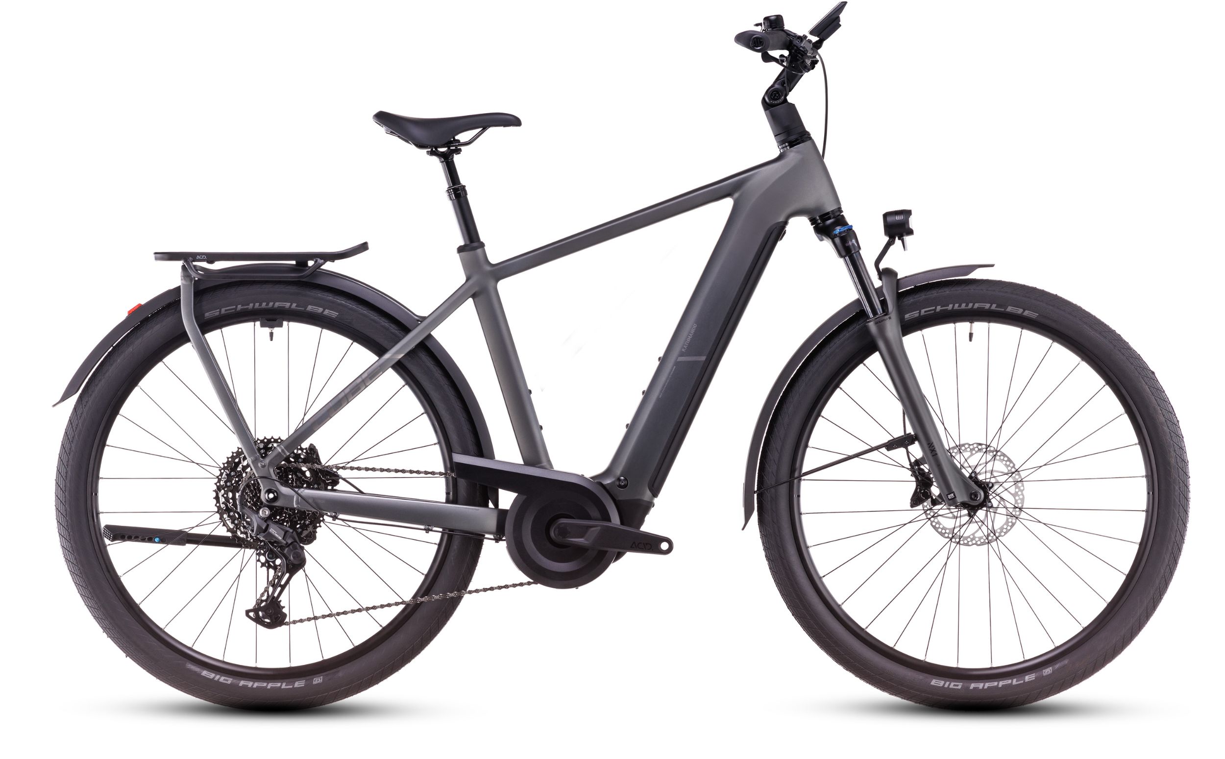 Le CUBE Kathmandu Hybrid Pro 800 est synonyme de liberté ultime sur deux roues - et c'est pourquoi il est équipé d'un moteur Bosch pratique pour une poussée supplémentaire vers l'avant ! Et notre porte-bagages intégré IC 3.0, super élégant et stable, qui permet de ranger tout ce qui doit être emporté en randonnée. Son entraînement Bosch CX et sa batterie PowerTube 800 Wh sont intégrés de manière si propre et esthétique dans le design du cadre qu'ils se remarquent à peine. Ce que l'on remarque par contre, c'est le soutien énergique en avant. La large gamme de vitesses Shimano Cues 11 vitesses passe d'une vitesse à l'autre avec précision et en douceur. Tout aussi souples, mais tout aussi efficaces : les freins à disque hydrauliques à 4 pistons de Shimano, qui ralentissent et arrêtent le vélo de manière fiable. Last but not least, nous avons monté un set complet d'accessoires. Alors, où veux-tu aller pour ta prochaine aventure ?