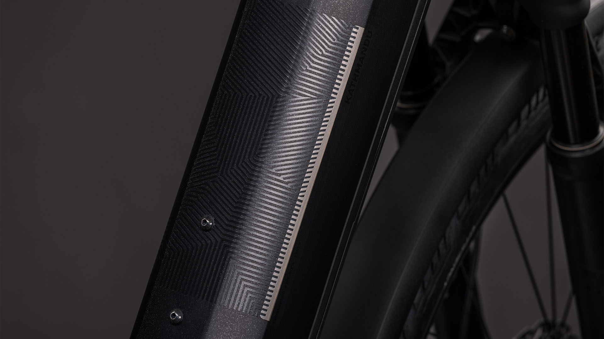 Le cadre surbaissé du Cube Kathmandu Hybrid porte bien son nom, car il est très facile de monter et de descendre et l'aventure peut commencer directement ! Mais il y a plus, par exemple le moteur CX de Bosch, avec sa batterie PowerTube 800 Wh, esthétiquement et proprement intégré dans le design, et notre Efficient Comfort Geometry, qui fonctionne harmonieusement avec la fourche suspendue de 100 mm, ce qui optimise le contrôle, surtout dans des conditions difficiles. De plus, la pose interne des câbles souligne le look épuré du châssis. Et quoi d'autre ? Un UDH polyvalent, presque indestructible, pour une disponibilité facile des pièces de rechange, un garde-chaîne intégré et notre porte-bagages intégré IC 3.0, stable, robuste et très esthétique, qui peut accueillir tout ce qui doit être emporté lors d'un voyage d'exploration.