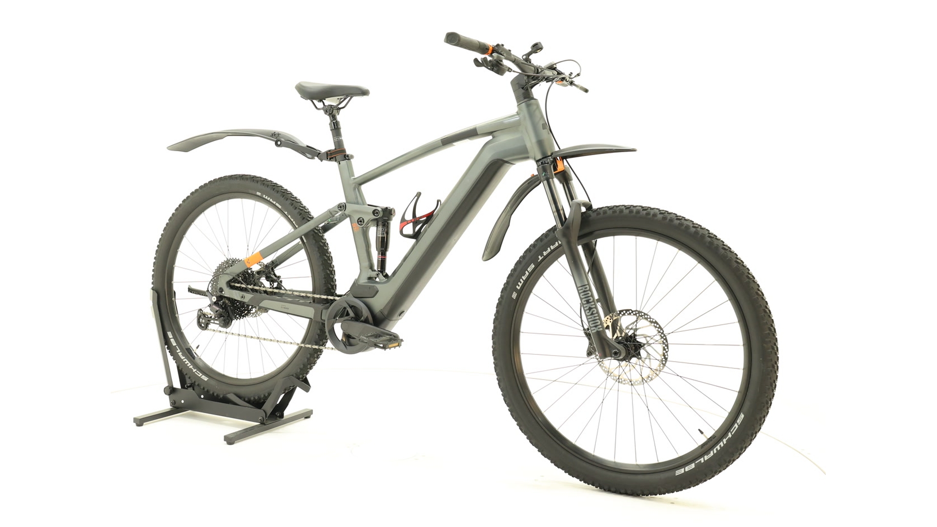 Le Cube Stereo Hybrid 120 Pro 750 est un VTT électrique tout suspendu, parfait pour les randonnées tout-terrain et la vie quotidienne. Il dispose d'un puissant moteur Bosch Performance Line CX avec un couple de 85 Nm et d'une grande batterie de 750 Wh - idéal pour les longs trajets sans avoir à recharger. A l'avant et à l'arrière, un débattement de 120 mm par la fourche RockShox et l'amortisseur Deluxe Select assurent confort et contrôle sur les sentiers et les terrains accidentés. Avec la transmission Shimano Deore 12 vitesses et les freins à disque hydrauliques, le vélo peut être manœuvré de manière fiable et freiné en toute sécurité - même dans des conditions exigeantes. Le cadre en aluminium avec batterie intégrée offre confort, stabilité et points de montage pour les garde-boue, le porte-bagages ou la béquille - idéal aussi pour le quotidien ou les trajets pendulaires. Dans l'ensemble, le Stereo Hybrid 120 Pro 750 convainc par son entraînement puissant, sa suspension confortable et sa grande aptitude à l'usage quotidien - un compagnon polyvalent pour les randonnées et les loisirs.