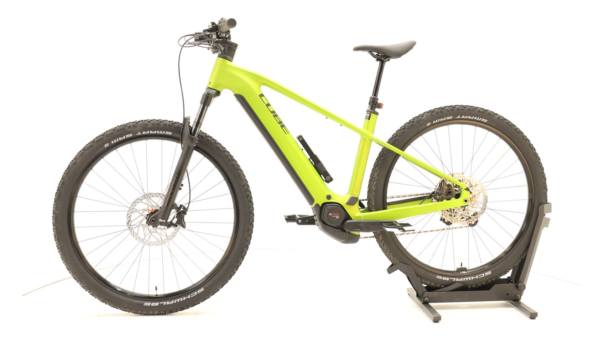 Le Cube Reaction Hybrid Race 800 est un hardtail E-TB puissant, idéal pour les randonnées et les aventures en sentier. Son cadre Superlite en aluminium allie légèreté et stabilité et offre un look épuré grâce à l'Internal Cable Routing. Le puissant moteur central Bosch Performance Line CX et la grande batterie PowerTube 800 Wh fournissent une assistance puissante et une grande autonomie. Le contrôle maximal sur tous les terrains est assuré par la fourche à suspension pneumatique RockShox Recon Silver, les pneus Schwalbe Smart Sam (2.6″) très adhérents et les freins à disque hydrauliques. Avec le dérailleur 12 vitesses précis, le vélo vient à bout des montées sans effort, tandis qu'une tige de selle escamotable et des roues Tubeless-Ready garantissent confort et polyvalence.