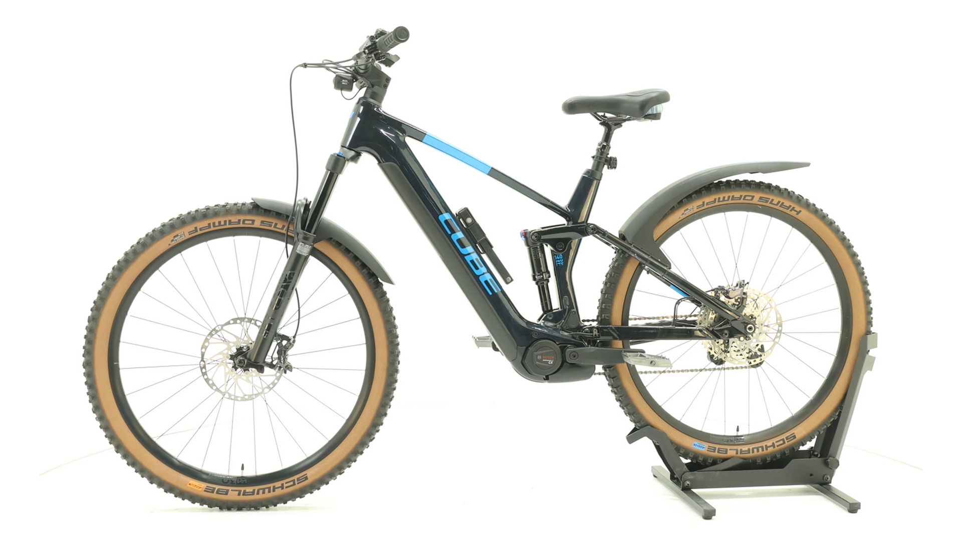 L' Cube Stereo Hybrid 140 HPC SLX 750 est un VTT électrique tout-terrain super puissant avec un débattement avant de 150 mm et un débattement arrière de 140 mm, parfait pour toutes les aventures sur les sentiers. Avec son moteur Bosch Performance CX (Gen4, 85 Nm) et sa batterie Bosch Powertube intégrée de 750 Wh, tu as plein de puissance et une bonne autonomie, même sur les longues distances. Le cadre léger en carbone HPC combine une géométrie all-mountain moderne avec un passage interne des câbles pour un look propre et facile à entretenir. Une transmission Shimano XT 12 vitesses précise, des freins hydrauliques XT puissants et des amortisseurs Fox de haute qualité complètent cet ensemble de composants harmonieux.