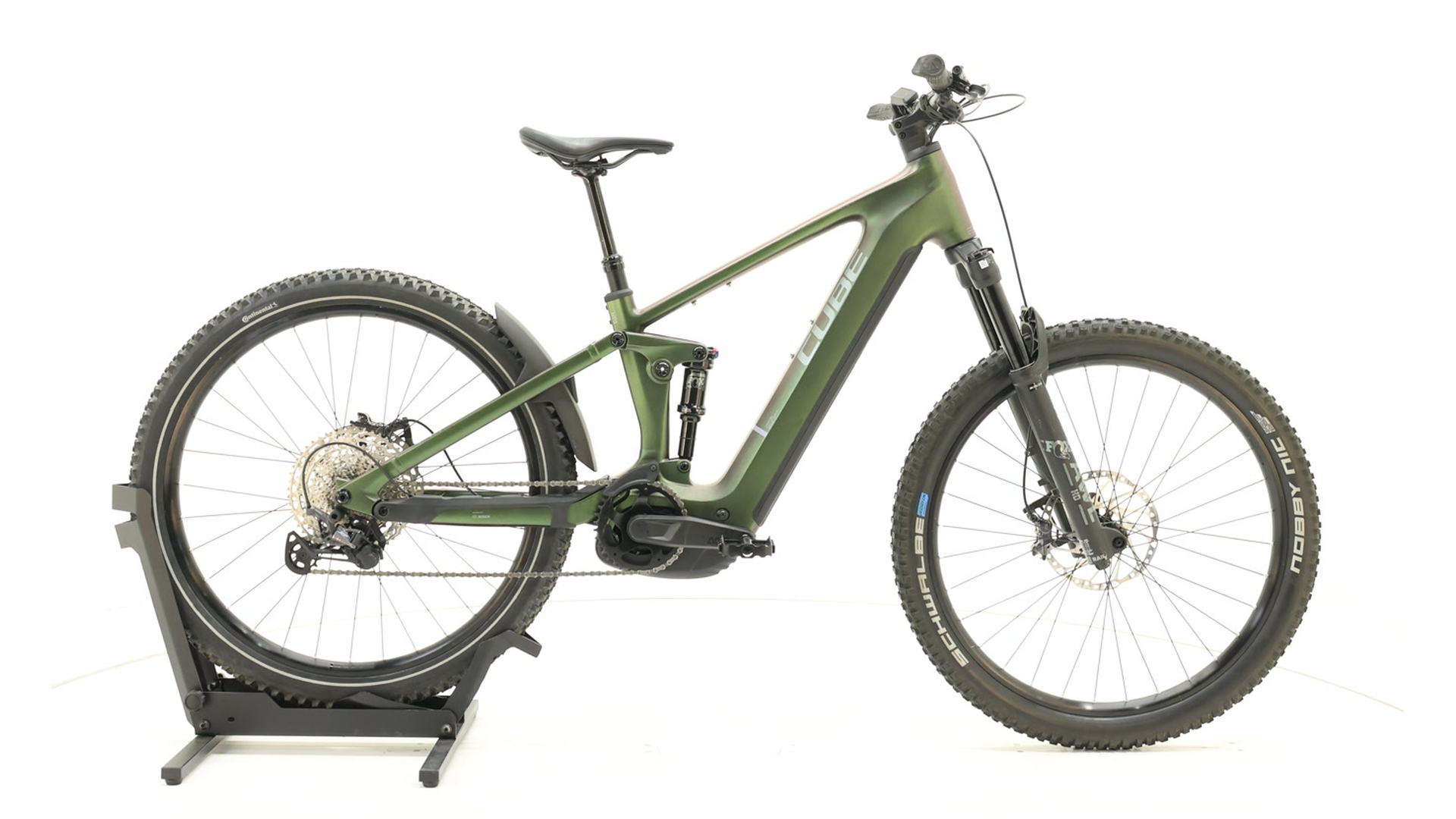 Le Cube Stereo Hybrid ONE44 EXC 800 est un VTT électrique (full-suspension) de haute qualité, parfait pour les sentiers exigeants, les longues randonnées et les sorties sportives. Avec le puissant moteur Bosch Performance Line CX et la batterie PowerTube intégrée de 800 Wh, tu es fiable avec un soutien puissant &mdash ; idéal pour les montées raides ou les longues distances tout-terrain. La construction robuste en aluminium, combinée à un débattement de 140 mm à l'avant et à l'arrière (via la fourche Fox 36 Float AWL et les amortisseurs Float Rhythm RC), assure un confort et un contrôle exceptionnels sur tous les terrains. La configuration est complétée par un dérailleur Shimano XT 12 vitesses précis et de puissants freins à disque hydrauliques &mdash ; pour un contrôle maximal sur les sentiers techniques. Ce fully combine de fortes performances de vélo électrique, des composants de châssis solides et des caractéristiques adaptées à la vie quotidienne &mdash ; parfait pour les cyclistes qui ne veulent pas faire de compromis.
