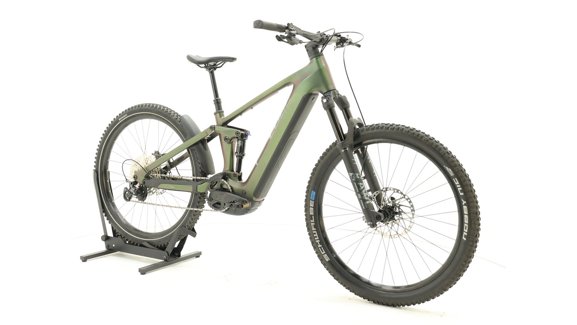 Cadre Aluminium Superlite, technologie de moulage par gravité, contrôle efficace du confort, FSP 4-Link, géométrie Agile Comfort, Boost 148, UDH™, batterie complètement intégrée, acheminement interne avancé des câbles, points de fixation pour béquille/garde-boue/porte-bagages, collier de selle intégré