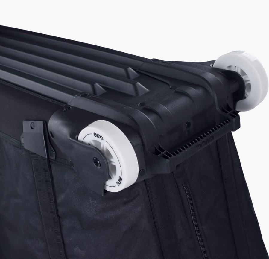 La structure robuste, la géométrie optimisée et le matériau renforcé de haute qualité protègent le cadre, la fourche et les composants de manière fiable. Grâce aux roulettes de skate interchangeables, à un système de fermeture approuvé par le TSA, au ZIPPER LOCK et à un compartiment intégré pour les cartes de visite, le sac est parfait pour les voyages en avion, en train et les road trips.