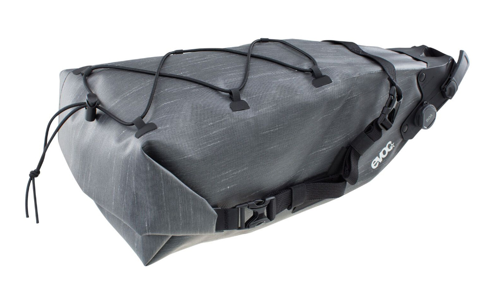 - Volume de rangement jusqu'à 8 litres, adaptable grâce à l'ouverture du sac enroulable et aux sangles de compression