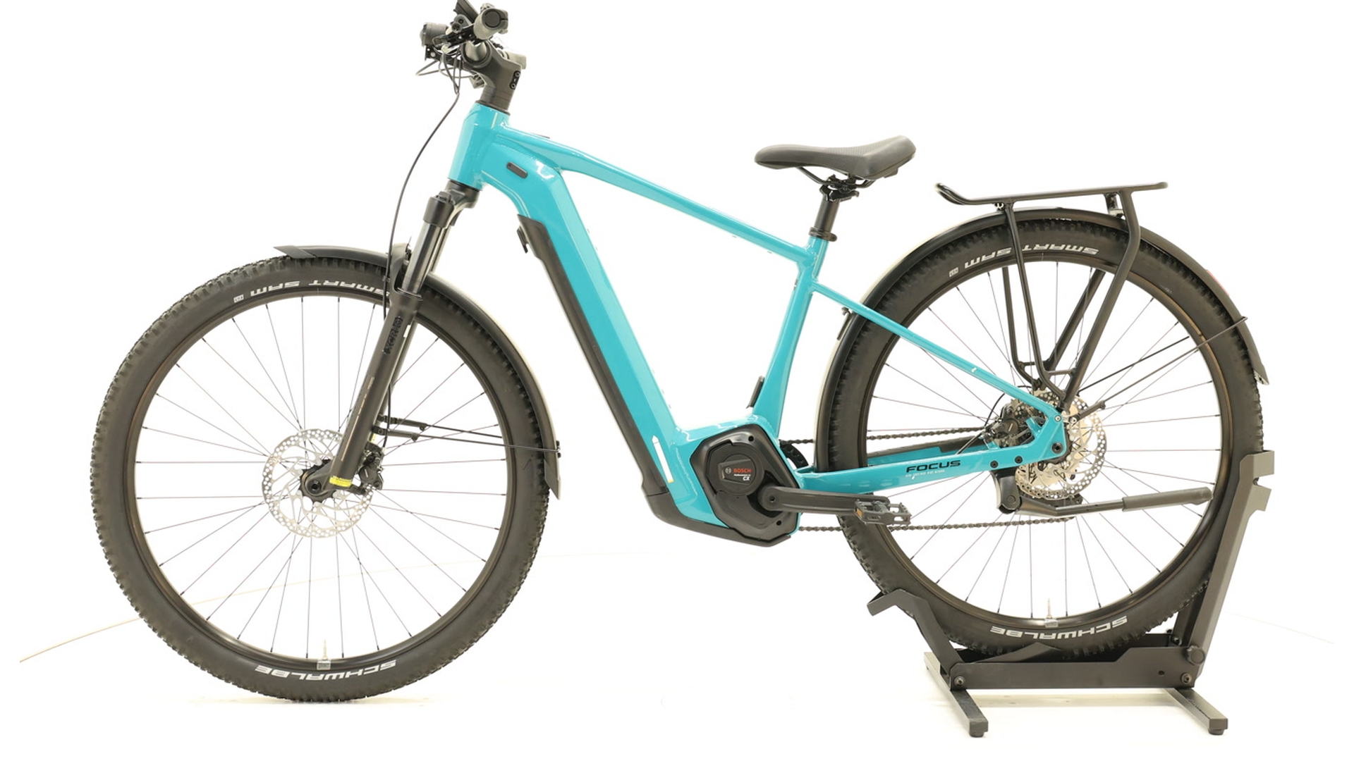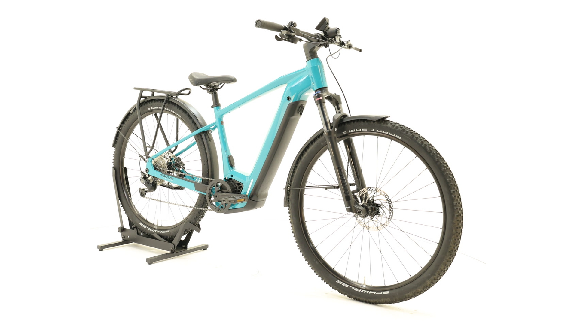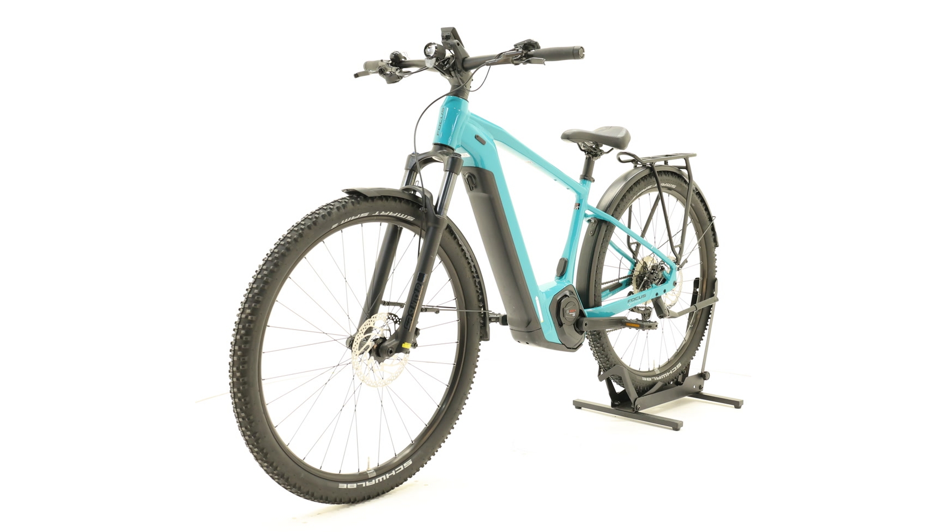 Le Focus Aventura²6.7 est un vélo de trekking électrique polyvalent qui t'accompagne en toute confiance dans l'aventure. Il est entraîné par le puissant moteur BoschPerformanceLineCX (85Nm, 250W) avec une batterie PowerTube intégrée et amovible de 625Wh. Grâce au débattement de 100mm de la fourche SRSuntourXCR, aux roues 29&Prime avec des pneus SchwalbeSmartSam adaptés au gel et à la transmission Shimano Deore à 10 vitesses, il maîtrise la ville et l'offroad. Les freins à disque hydrauliques Shimano MT200 assurent un contrôle sûr. Un équipement complet &ndash ; des tôles de protection, des porte-bagages, des pare-chocs, des lumières et un cockpit ergonomique &ndash ; le rendent apte à la randonnée et à la vie quotidienne. Avec un cadre en aluminium de haute qualité et un design bien pensé, l'Aventura² ; 6.7 garantit le plaisir de conduire et la fiabilité sur tous les terrains.