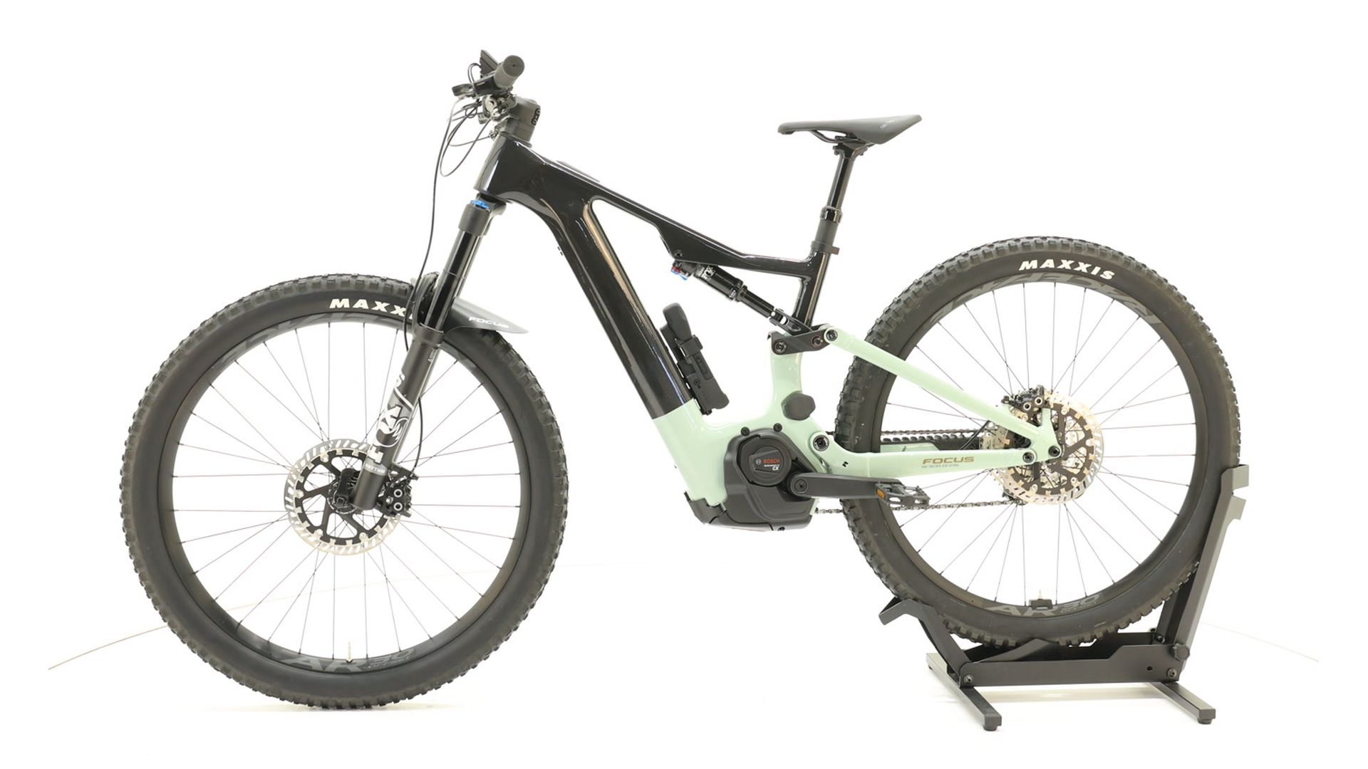 Cadre Triangle avant en carbone, triangle arrière en aluminium, cinématique F.O.L.D. GEN2 de 150 mm, axe traversant de 148 x 12 mm, passage de câbles interne, fixation post mount de 203 mm