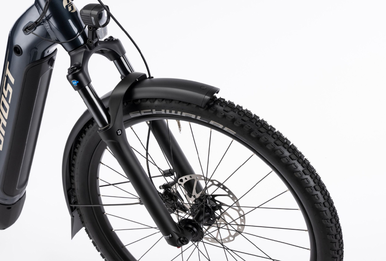 Un vélo de tous les jours, mais avec des vibrations de VTT : le Ghost E-Teru Advanced EQ est ton vélo électrique pour tous les jours. Que tu sois souvent sur la route ou que tu aimes t'aventurer sur les chemins de gravier et de forêt, le cadre robuste en aluminium et la fourche suspendue SR Suntour avec 100mm de débattement t'offrent un maximum de sécurité et de confort. Le puissant moteur Bosch et la puissance de la batterie de 800 WH te permettent de maîtriser facilement les longues distances, en ville comme en randonnée. Avec un poids total autorisé de 150 kg, le vélo reste toujours stable et sûr, même avec beaucoup de bagages. Entièrement équipé de lumières, de garde-boue et de porte-bagages, c'est le compagnon idéal pour tous ceux qui se déplacent quotidiennement en vélo électrique.