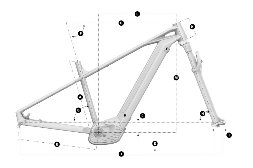 | Cadre | Prime Xtralite 6061 Full Butted Alloy, Forward Geometry, batterie intégrée et amovible, tube de direction conique, axe arrière Boost 12 x 148 mm, capteur de vitesse intégré dans la patte de fixation. |